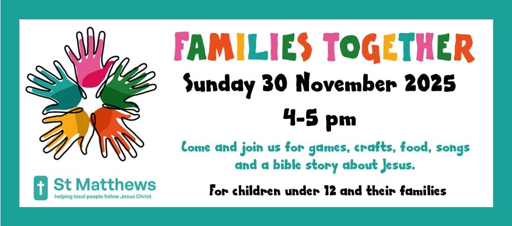 At St. Matthew’s you’ll find a church family of all ages keen to grow in our Christian faith and committed to helping local people follow Jesus Christ. Our main Sunday service is at 11am each week and this includes activities for children from babies through to school year 11.